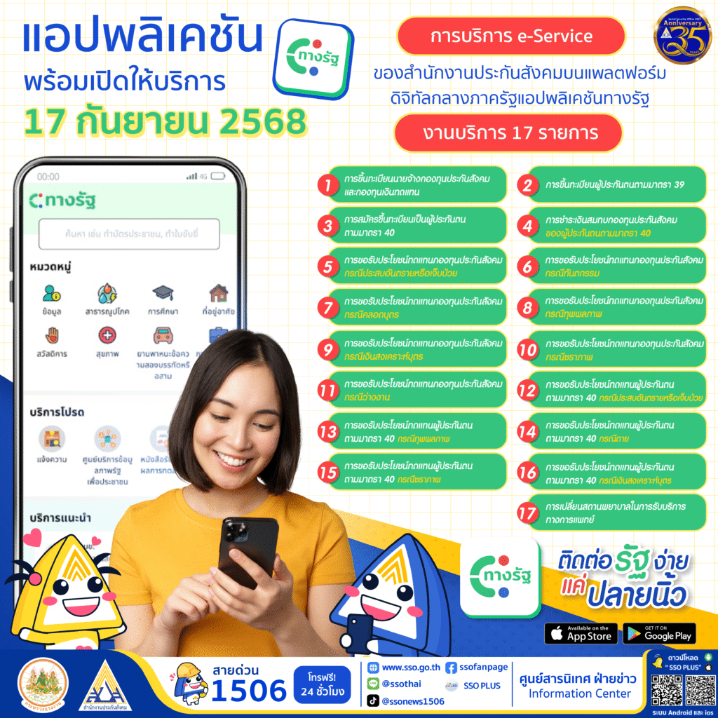 นางสาวบุปผา เรืองสุด เลขาธิการสำนักงานประกันสังคม เปิดเผยว่า เพื่อรองรับการให้บริการยุคใหม่ที่เข้าถึงง่าย สำนักงานประกันสังคมได้บูรณาการข้อมูลเข้ากับแอป “ทางรัฐ” ซึ่งเป็นแพลตฟอร์มกลางของภาครัฐ ให้ผู้ประกันตนสามารถตรวจสอบข้อมูลและยื่นขอรับสิทธิประโยชน์ต่าง ๆ ของประกันสังคมได้ด้วยตัวเอง รวดเร็ว ปลอดภัย และไม่ต้องเดินทาง